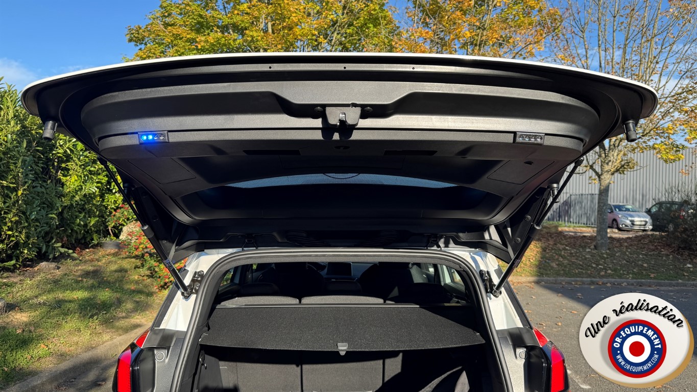 2 microlit bleu en feuillure de hayon visibles à l’ouverture du coffre